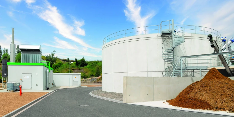The Klostermansfeld biogas plant produces biogas through the dry fermentation of renewable raw materials from local farms. In contrast to many other biogas plants that only generate power, the raw materials are used here to generate energy more efficiently through Jenbacher CHP technology and a Jenbacher J316 engine.