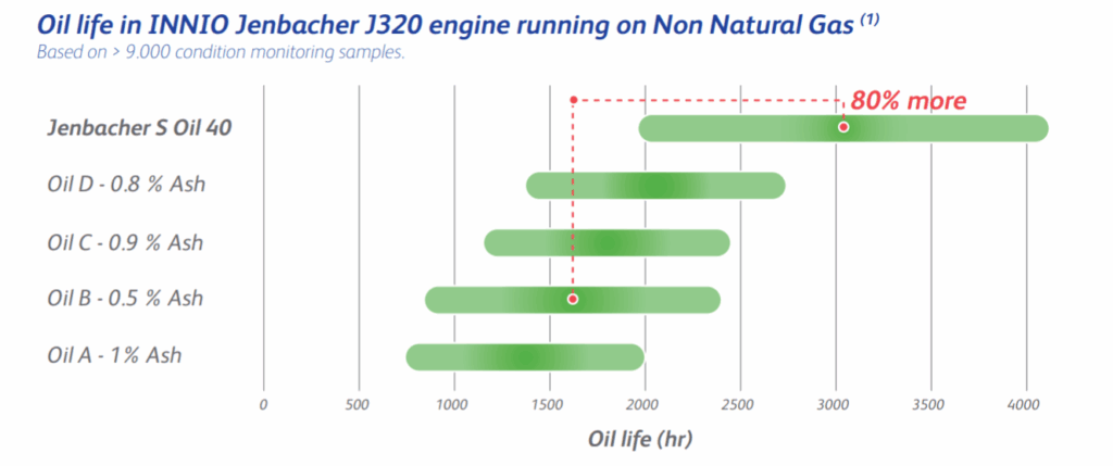 Jenbacher S Oil 40 can be used for all series of Jenbacher engines Type 2, Type 3, Type 4 and Type 6, operating on various types of non-natural gases.